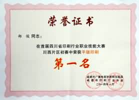 2012年獲得第三屆全國印刷行業(yè)職業(yè)職能大賽(四川賽區(qū))選拔賽平版印刷類二等獎(jiǎng)